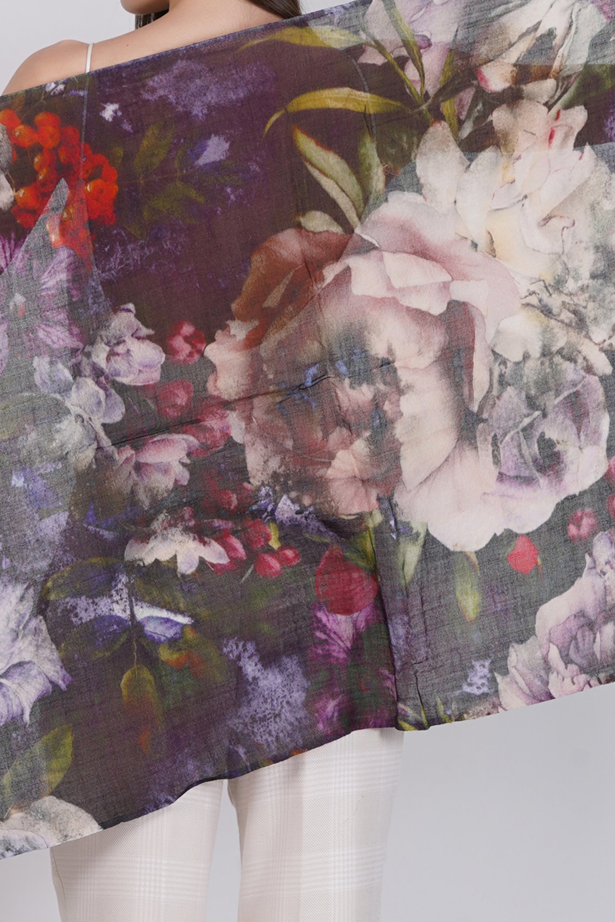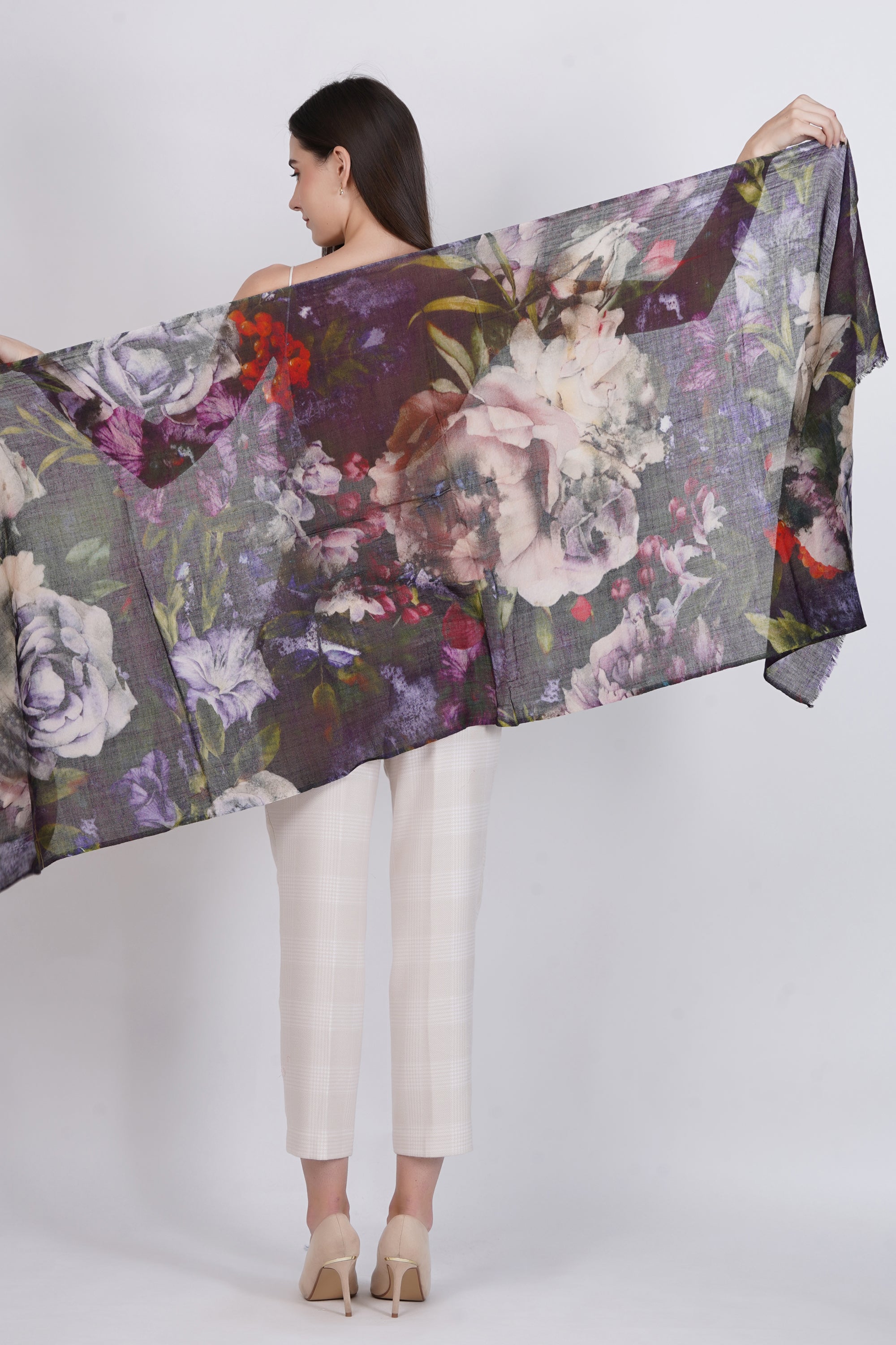 Dark Muti Floral Design Fine Wool Stole