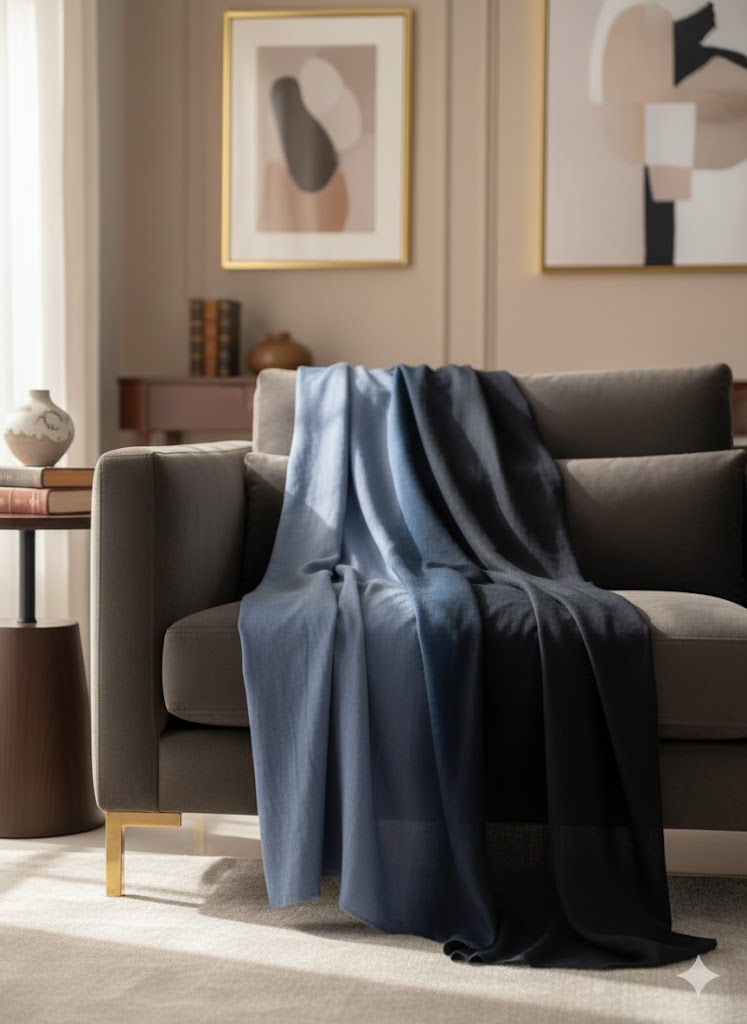 Design: The mesmerizing ombre effect is achieved through specialized dyeing, creating a smooth and seamless fade from dark to light. The edges appear naturally finished or have light fringing (as visible in the photo).