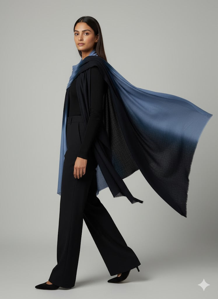 Embrace timeless elegance with this sophisticated Ombre Pashmina Stole. Featuring a classic and highly versatile dual-tone blend, this shawl provides a beautiful, subtle gradient that pairs well with virtually any color palette.