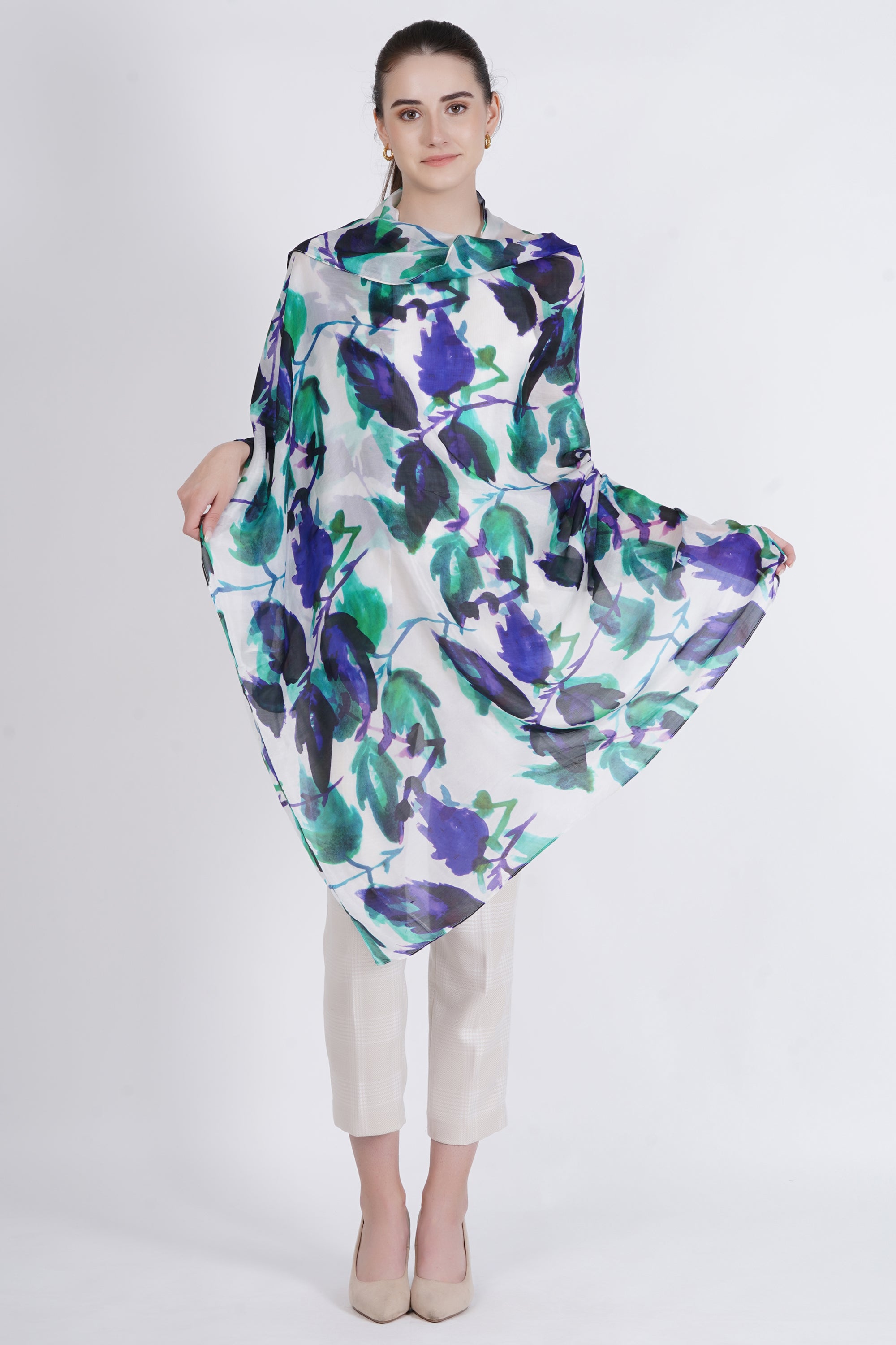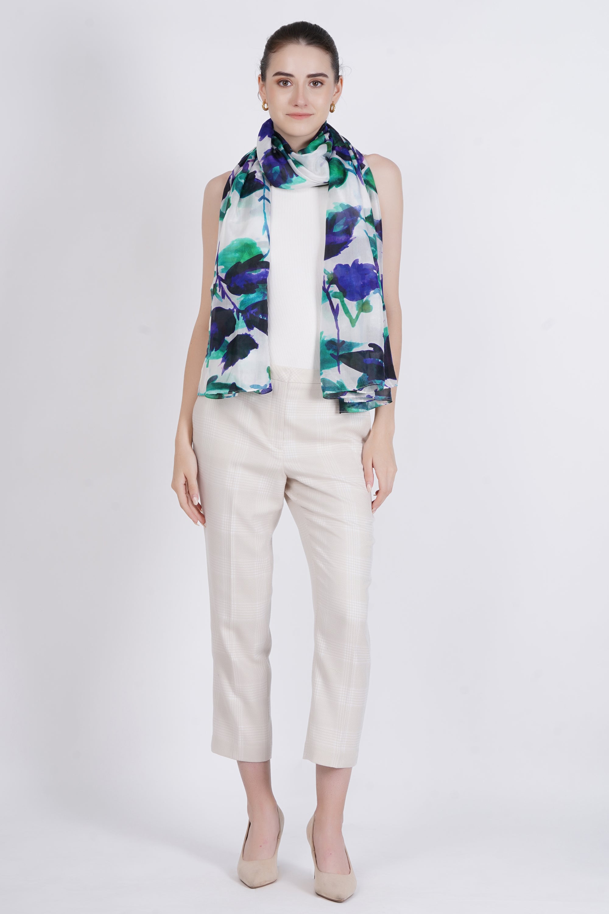 This 100% silk scarf combines luxury and style. Its smooth texture and subtle sheen will elevate any outfit, making it the perfect accessory for both day and night occasions.