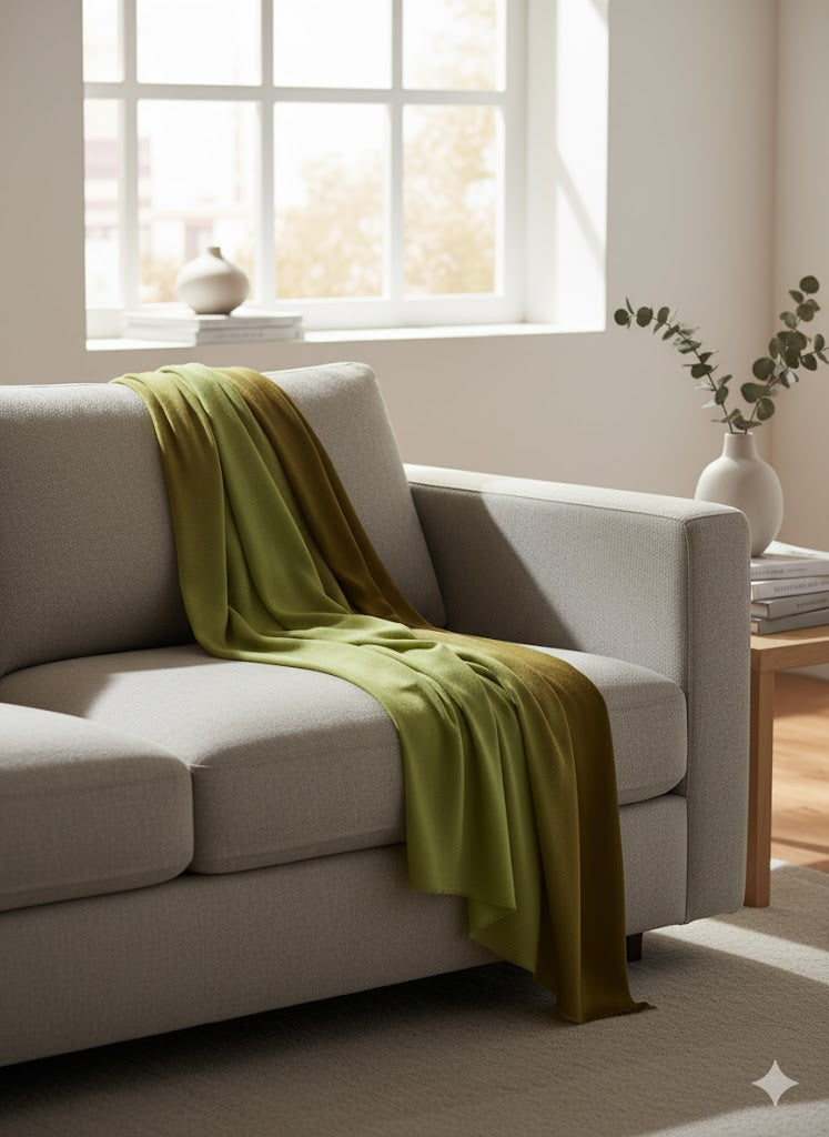 Design: Classic rectangular shape with a clean, graduated Ombre pattern. It features delicate, natural fringed edges (as seen in the image) for an added touch of texture and style.