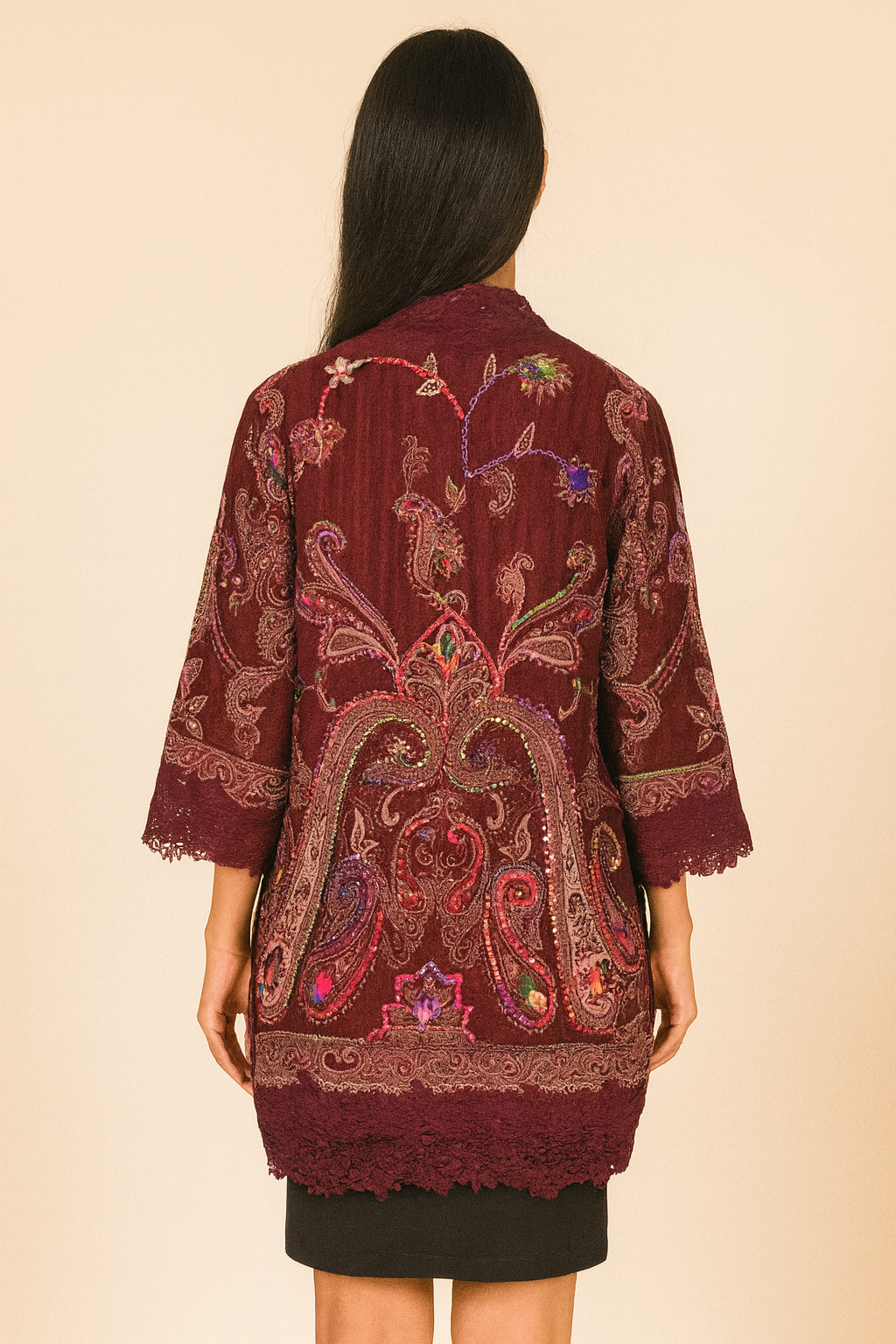 Elevate your style with this elegant Maroon Wool Embroidery Lace Jacket, beautifully designed with a blend of comfort, craftsmanship, and timeless charm. The soft woollen fabric features an all-over floral embroidered pattern in subtle tones, giving it a classic yet refreshing appeal.