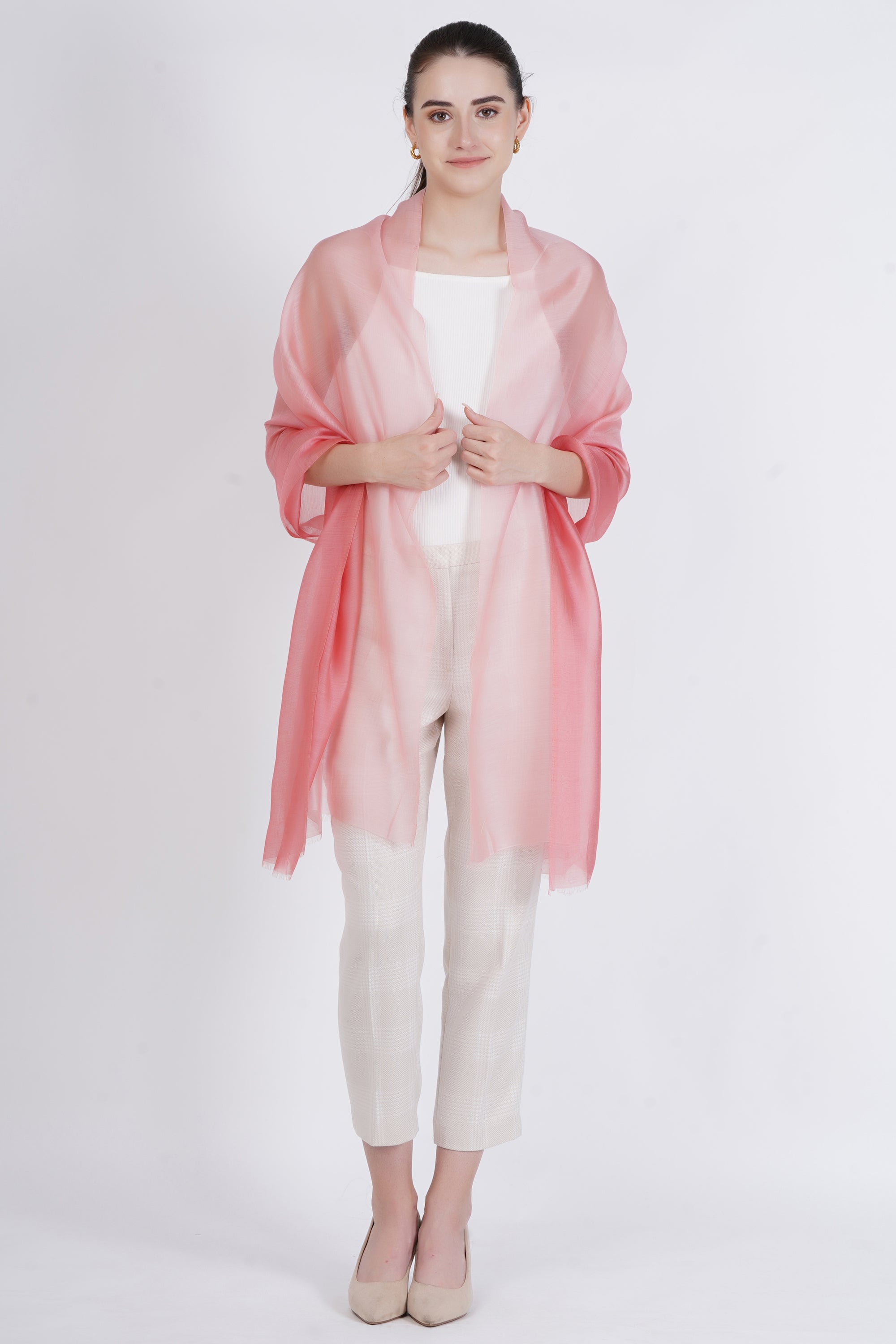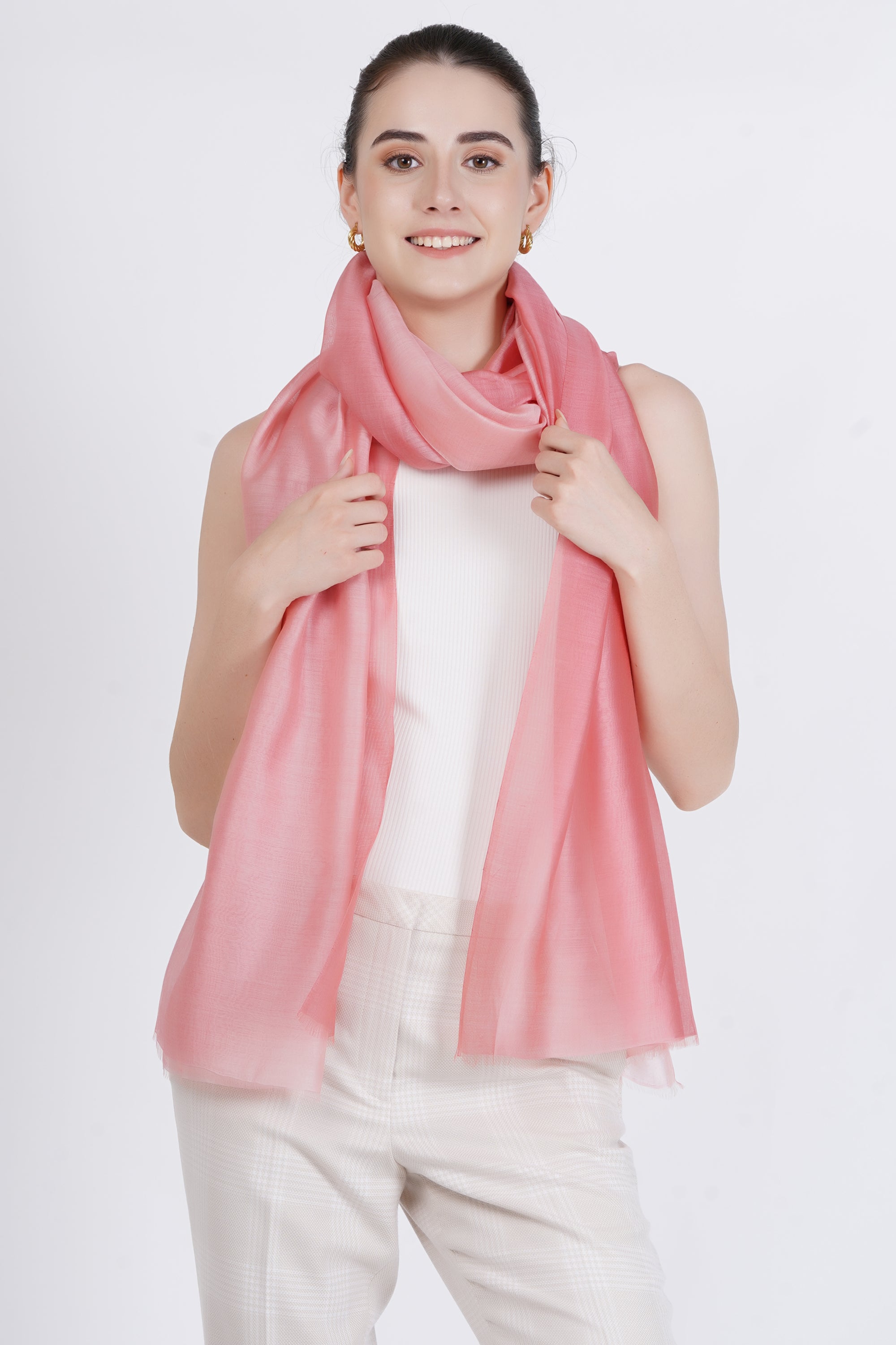 "An elegant fine modal silk stole is perfect for year-round wear. With its self-fringed edges and light, breathable fabric, it will effortlessly elevate your outfit while providing comfort and warmth.