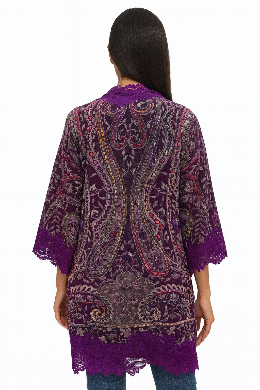 Elevate your style with this elegant Purple Wool Embroidery Lace Jacket, beautifully designed with a blend of comfort, craftsmanship, and timeless charm. The soft woollen fabric features an all-over floral embroidered pattern in subtle tones, giving it a classic yet refreshing appeal.