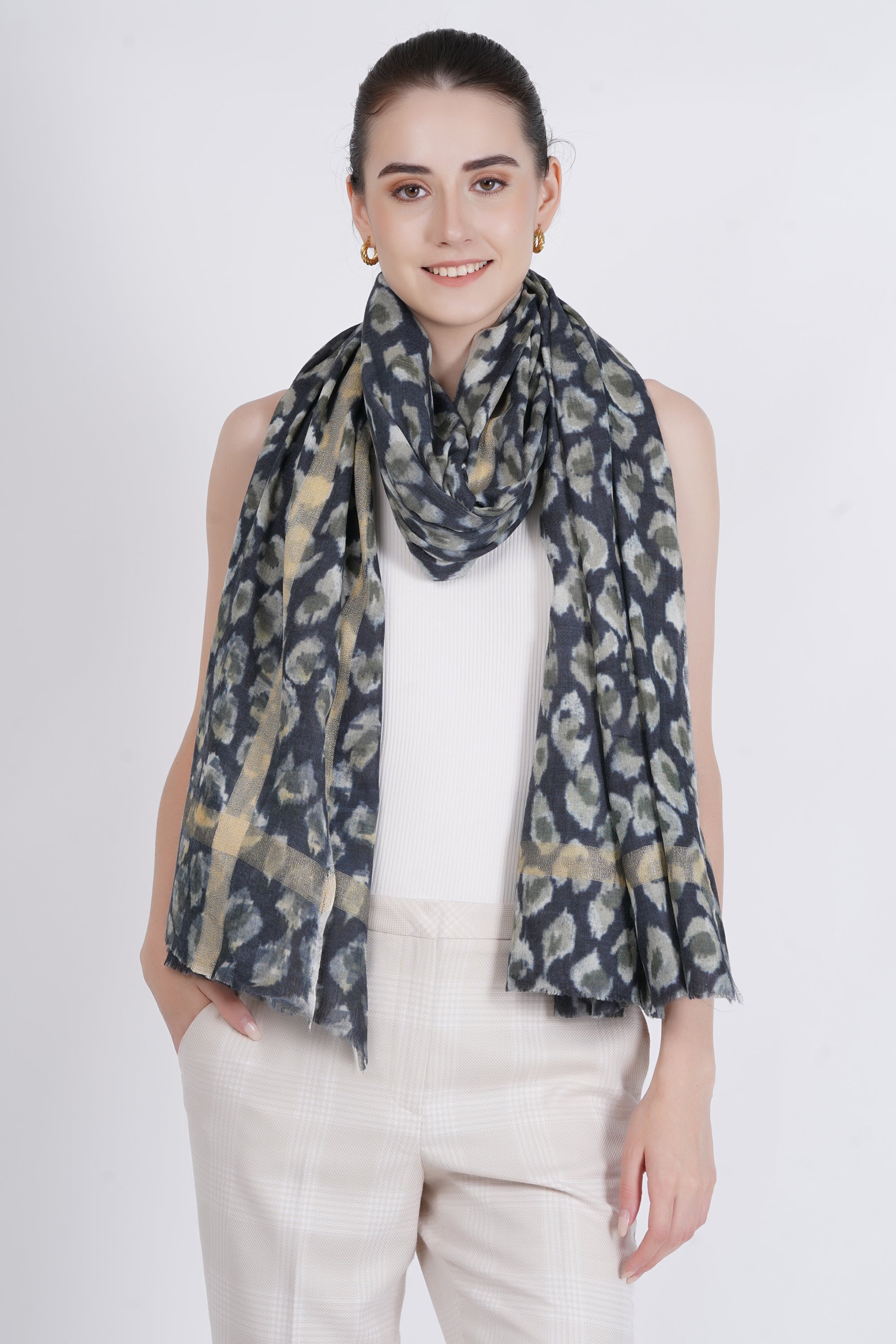 "This fine modal scarf, with its self-fringed edges, is designed to offer both warmth and style. The luxurious texture adds an elevated touch to any outfit, perfect for every season.